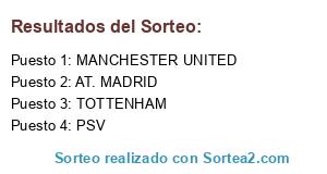Lista de participantes: PSV, AT. MADRID, MANCHESTER UNITED, TOTTENHAM.