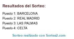 Lista de participantes: CELTA, LAS PALMAS, BARCELONA, REAL MADRID.