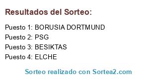 Lista de participantes: PSG, ELCHE, BORUSIA DORTMUND, BESIKTAS.