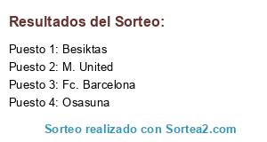 Lista de participantes: Besiktas, Osasuna, M. United, Fc. Barcelona.
