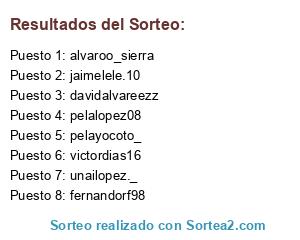 Lista de participantes: alvaroo_sierra, victordias16, jaimelele.10, unailopez._, fernandorf98, pelalopez08, davidalvareezz, pelayocoto_.
