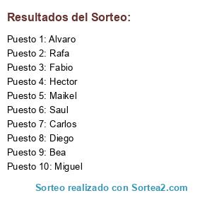 Resultados del sorteo: