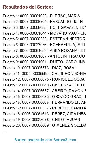 - Puesto 7: 0006-00061652 - ABBA ROXANA EDITH