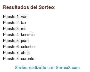 Lista de participantes: tax, van, ahris, jean, curanto, mc, kenshin, colocho.