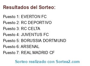 Lista de participantes: ARSENAL, BORUSSIA DORTMUND, EVERTON FC, JUVENTUS FC, RC CELTA, RC DEPORTIVO, REAL MADRID CF.