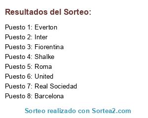 Lista de participantes: Real Sociedad, Everton, Inter, United, Shalke, Roma, Barcelona, Fiorentina.