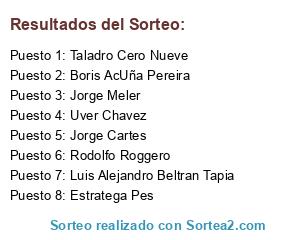 Lista de participantes: Uver Chavez, Boris AcUña Pereira, Rodolfo Roggero, Jorge Meler, Luis Alejandro Beltran Tapia, Estratega Pes, Jorge Cartes, Taladro Cero Nueve.