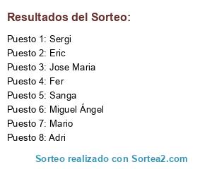 Lista de participantes: Miguel Ángel, Sergi, Eric, Adri, Jose Maria, Mario, Sanga, Fer.