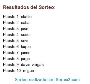 Lista de participantes: luque, david vargas, eladio, jaime, jorge, jose, migue, sevi, suso, caba.