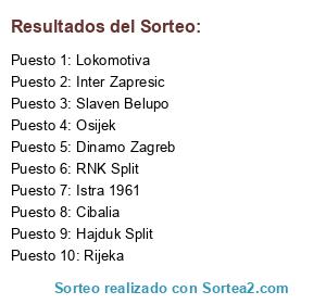 Lista de participantes: Dinamo Zagreb, Hajduk Split, Lokomotiva, Rijeka, Osijek, RNK Split, Inter Zapresic, Slaven Belupo, Istra 1961, Cibalia.