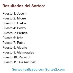 Lista de participantes: Carlos, Iván, Pedro, Pablo, Migue, Pablo Jr, Josemi, Prenda, Ale morales, Ale Antunez, Alberto.