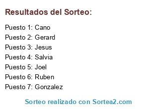 Resultados del sorteo: