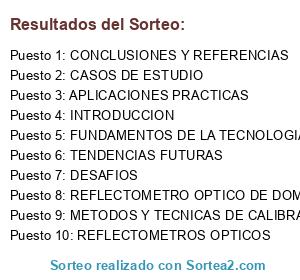 Lista de participantes: INTRODUCCION, FUNDAMENTOS DE LA TECNOLOGIA OPTICA, REFLECTOMETROS OPTICOS, REFLECTOMETRO OPTICO DE DOMINIO DE TIEMPO, METODOS Y TECNICAS DE CALIBRACION, CASOS DE ESTUDIO, APLICACIONES PRACTICAS, DESAFIOS, TENDENCIAS FUTURAS, CONCLUSIONES Y REFERENCIAS.
