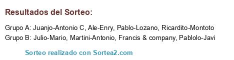 Lista de participantes: Martini-Antonio, Pablo-Lozano, Juanjo-Antonio C, Francis & company, Julio-Mario, Ale-Enry, Ricardito-Montoto, Pablolo-Javi.