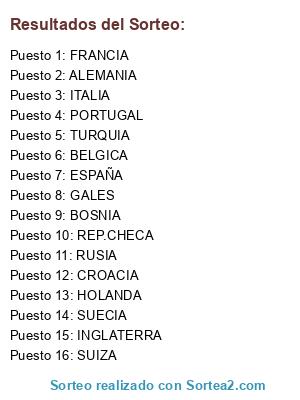 Este sorteo es para la asignación de países para los que conforman la primer parte de Europa (del 1 al 12)