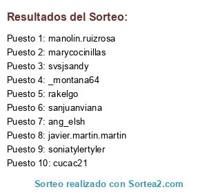 Lista de participantes: silviamdt, silviamdt, silviamdt, silviamdt, svsjsandy, svsjsandy, glogado, juanmagarber, marianmblb, beatrizamg, rakelgo, gomellana1, welcome_foto, elblogdebianca, ferrerofranciscoj, yolanda151276, patyco_candybar, _lunanueva, perysab, pacferrrami, martagranadoh, velomonika, hermomarac, mrlale, mari.carmen.hp, isabelro86, isabelro86, marvelita.soy.yo, marfuembuena, universopangea5, olguibiriss, rakelgo, mejorcontrol21, rebeky9, mariajosemontoyaberenguer, sussie_walls, nie7ves, c_a_y_e_t_a_n_o, mrlale, giradoreyes, elbauldejackie, lovelybego, cucac21, caballomotero, fatimabilbaos, lauraypaco236, rakelgo, decemberdawnvm, madameofmoon, lauradyu, elblogdebianca, ceraaita, mariahzul, zu_olszewska, tres.j8, sirenita_aglaope, tocadordelahorro, nynosanchez, marilan_tester, angelinesfp, ventolin_el_duende, fuchiesteban, ahorramus, elblogdebianca, migue_lmartin, maryaa_jose, bonninisasimaria, _montana64, nuriamg68, amal_iams, lacensuradeloscuentos, diegoalvarezcuervo, lalimalita, paticolor1983, _montana64, lauraespadavera, isabelro86, nachobugar, jeniyani2, carmensoler08, celestino.menendezmedina, angelinesfp, ang_elsh, ama_liamartin, eglenazareth, laurablancofer, vickyma70, mojsin88, bienve15, celiasanchezfotografias, srtapaz2, trasgu1980, mrlale, angelius_pa2, akatiefelipe1980, lucaci.anamaria, elkawa1972, marycocinillas, mrlale, loli_lolitasoy, marrichu32, beatrizamg, zumo_de_manzana, david_mohedas_, yulirima5, mojsin88, mrlale, colrindavid19, marilumi21, manantial69, pepingomez2, javier.martin.martin, anapin52, maricar_caste1961, maricar_caste1961, patriciasaezjimenez, _montana64, alespi65, casadomariaconcepcion, javier.martin.martin, chofy.chofy, maria.vior2019, licasu22, celiasanchezfotografias, _montana64, manugould, inmamora222, nuriaperezortega, manolin.ruizrosa, marga_goro, tony349822, tester_up, mariacasas332, comer_sano_no_es_aburrido, compras.en.la.red, andorra7979, dulcevidadulces, jgunroses, raqjaw, papa_en_proyecto, mrlale, _montana64, virginialopez9246, lachica_queopina, anitamohedas, gemelascc, moncheta1982, conchirt52, educandoelmundo, omoral75, masbicha_quetu, cristina.mein, mariluz3003, elquenoseafeita4, lauratomaste, josefitaato, soniatylertyler, davidramirez7896, miguel.a.aroca, antonioarpenalva, cristys161182, que_hay_por_aqui, viveydisfruta44, tamararodriguez1985, testeandoyopinando, marycocinillas, carolina.ramos.s, anacusca, criscrescam, belen85alonso, veronicapn3008, chusitamallorca, si_no_loveo_no_lopruebo, maytemay, andorra7979, carolroma45, crisprincesita1979, monica.del.riomaior, charo.romeroalvarez, sanjuanviana, carolroma45, estherdorisblau, andorra7979, teresitaba.