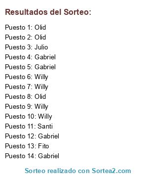 Resultados del sorteo: