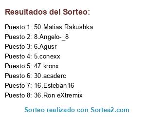 Lista de participantes: 1.DR34MH4CK, 10.Phantom Menace, 11.Dr. Alfred Lanning, 12.Darth Vesalius, 13.Eze1311, 14.BarbaNegraPC, 15.Elvis Cochuelo, 16.Esteban16, 17.Eltavo1969, 18.alm1983, 19.Rolando Gilead, 2.Cristian roth, 20.Judas UDT, 21.JMMAGAN, 22.Semidar, 23.EmiGp, 24.Nikko Rubra, 25.wal71, 26.Medullaguy, 27.Willard Gibbs, 28.Pab Mac, 29.RAMwAY, 3.Andres Saavedra Reborn, 30.acaderc, 31.Melinita, 32.dortos recargado, 33.pablo_f_87, 34.Leandro boasso, 35.Anabelle_Lee, 36.Ron eXtremix, 37.imspike, 38.Colorr, 39.Fernando Gonzalez Arrili, 4.xKodaKx, 40.KiolL, 41.Matias Rakushka, 42.Anabelle_Lee, 43.Maurog086, 44.heromir pullo cesar, 45.Bruno Argento, 46.El-nico, 47.kronx, 48.Graimito, 49.LuGGeR, 5.conexx, 50.Matias Rakushka, 6.Agusr, 7.Cteruel, 8.Angelo-_8, 9.Kelphes.