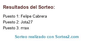 Lista de participantes: Jose Nachito Cabrera, Jcoruiz, David Cruz Cruz, C2d5, anyelo.fugitivo, rrrax, darth.sidious2.0, Jota27, Aleex Olivera, Soap McTravish, IsPaNeR, Felipe Cabrera.