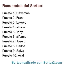 Lista de participantes: Fran, Acid, Lokovy, Joselu, Salva, Carlos, Caveman, alvaro, alfonso, Tony.