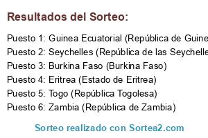 - Puesto 1: Guinea Ecuatorial (República de Guinea Ecuatorial)