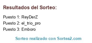 Lista de participantes: muere 47, shinjikaro, luks-13, nicolas2909, ReyDerZ, matex55, el_trio_pro, Emboro, kinhiki, zuzunin_24, fudaz, FerherX9, ReSnake 95, d.tox, JUANMA_1998LDM.