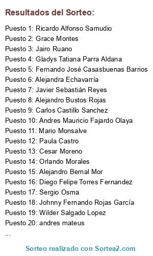 - Puesto 10: Andres Mauricio Fajardo Olaya