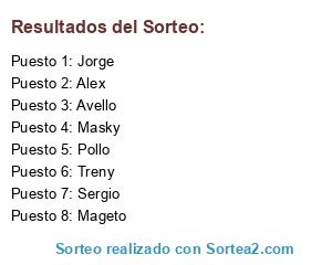 Lista de participantes: Jorge, Avello, Masky, Mageto, Sergio, Alex, Pollo, Treny.