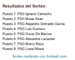 Lista de participantes: PSG Van Dijk, PSG Kevin Trapp, PSG Jose Angel Pozo, PSG Javier Pastore, PSG David Luiz, PSG Omer Toprak, PSG Alex Telles, PSG Timo Horn, PSG Marco Reus, PSG Luiz Gustavo, PSG Alexandre Lacazete, PSG Ousmane Dembele, PSG Oscar De Marcos, PSG Alejandro Grimaldo Garcia, PSG Lionel Messi, PSG Mosie Kean, PSG Ignacio Camacho.