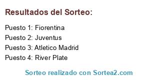 Lista de participantes: Juventus, River Plate, Fiorentina, Atletico.