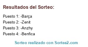 Lista de participantes: -City, -Benfica, -Anzhy, -Zenit, -Barça.