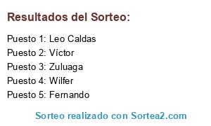 Lista de participantes: Tutistar, Leo Caldas, Víctor, Zuluaga, Otalvaro, Marlon, Moncayo, Fernando, Wilfer.