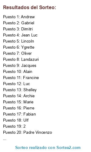 Resultados del sorteo: