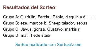 Lista de participantes: Ferchu, Javus, Guidulin, dieguin a 💝, gonza, Fede staib, markis r., sebus, marcos b, eze, Gustavo, Pablo, mati, Sheep talador.