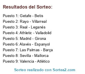 Lista de participantes: Levante - Alavés, Rayo - Bilbao, Barça - Villarreal, Mallorca - Real Sociedad, Oviedo - Atleti, Elche - Espanyol, Valencia - Osasuna, Betis - Sevilla, Girona - Celta, Madrid - Getafe.