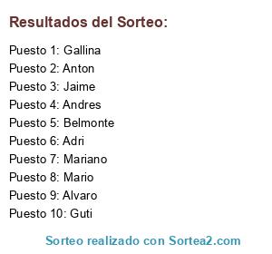 Lista de participantes: Adri, Gallina, Andres, Guti, Alvaro, Anton, Mario, Jaime, Mariano, Belmonte.