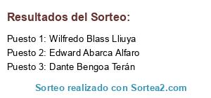 Lista de participantes: Edward Abarca Alfaro , Dante Bengoa Terán, Luis Fernando Farro Bancayán, Niko Rodríguez Koecklin , Wilfredo Blass Lliuya.