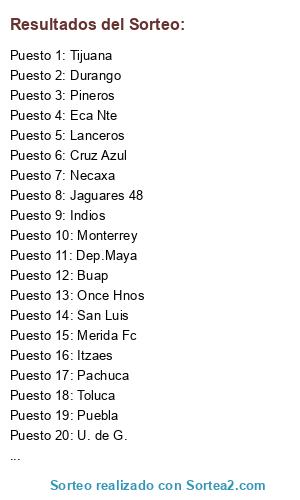 Resultados del sorteo: