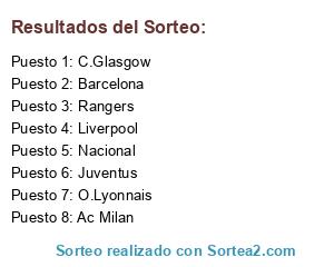 Lista de participantes: C.Glasgow, Nacional, Ac Milan, Juventus, Rangers, O.Lyonnais, Barcelona, Liverpool.