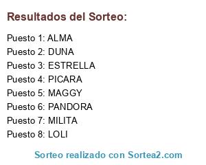 Lista de participantes: ALMA, PICARA, PANDORA, MAGGY, ESTRELLA, MILITA, DUNA, LOLI.