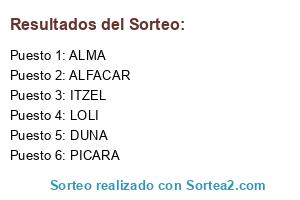 Lista de participantes: ALMA, DUNA, ALFACAR, LOLI, ITZEL, PICARA.