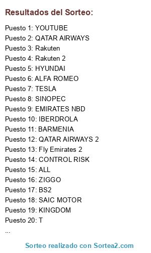 Lista de participantes: Fly Emirates, Fly Emirates 2, Rakuten, Rakuten 2, QATAR AIRWAYS, QATAR AIRWAYS 2, IBERDROLA, EMIRATES NBD, SINOPEC, UNICEF, SIEMENS, HYUNDAI, ZIGGO, MINI, ALFA ROMEO, OSBORNE, DAFABET, ALL, EVONIK, T, BARMENIA, YOUTUBE, CONTROL RISK, TESLA, BS2, KINGDOM, POLUS, PINGANBANK, PARI MATCH, SAIC MOTOR.
