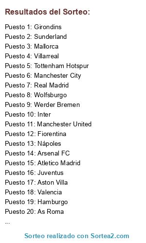 Lista de participantes: Real Madrid, Chelsea FC, Tottenham Hostpur, Juventus.