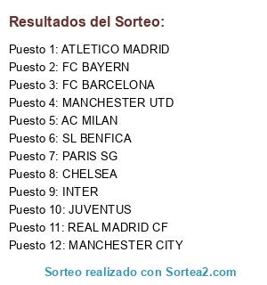 Resultados del sorteo: