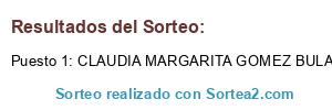 Este sorteo ha sido certificado por Sortea2. Sortea2 garantiza que: