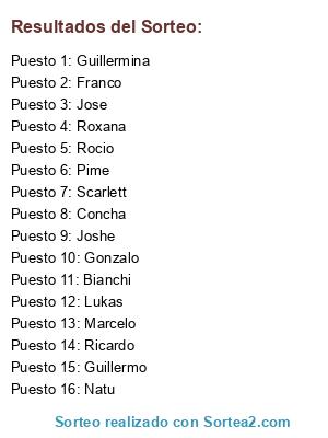 Resultados del sorteo: