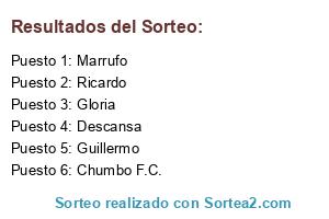 Lista de participantes: Ricardo, Chumbo F.C., Guillermo, Marrufo, Gloria, Descansa.
