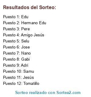 Lista de participantes: Nano, Gabi, Adri, Jose, Samu, Pere, Tomatillo, Jesús, Amigo Jesús, Edu, Hermano Edu, Selu.