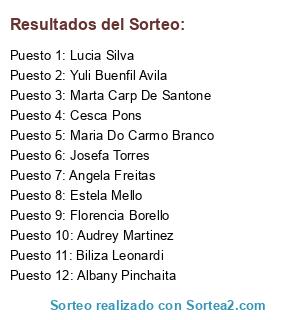 Lista de participantes: Albany Pinchaita, Marta Carp De Santone, Cesca Pons, Maria Do Carmo Branco, Angela Freitas, Biliza Leonardi, Florencia Borello, Yuli Buenfil Avila, Estela Mello, Audrey Martinez, Lucia Silva, Josefa Torres.