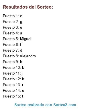 Lista de participantes: Miguel, Alejandro, a (2 participaciones), b (3 participaciones), c (20 participaciones), d, e (19 participaciones), f, g, h, j, k, r, u, t.
